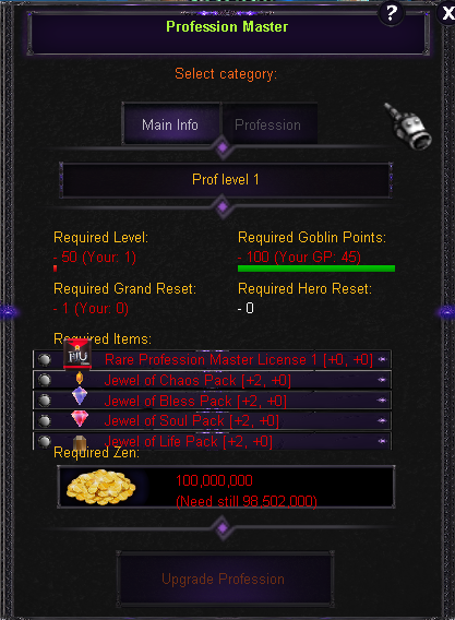 Profession Master License можно скрафтить у нпц Craft Manager который расположен в Devias Craft 228 9